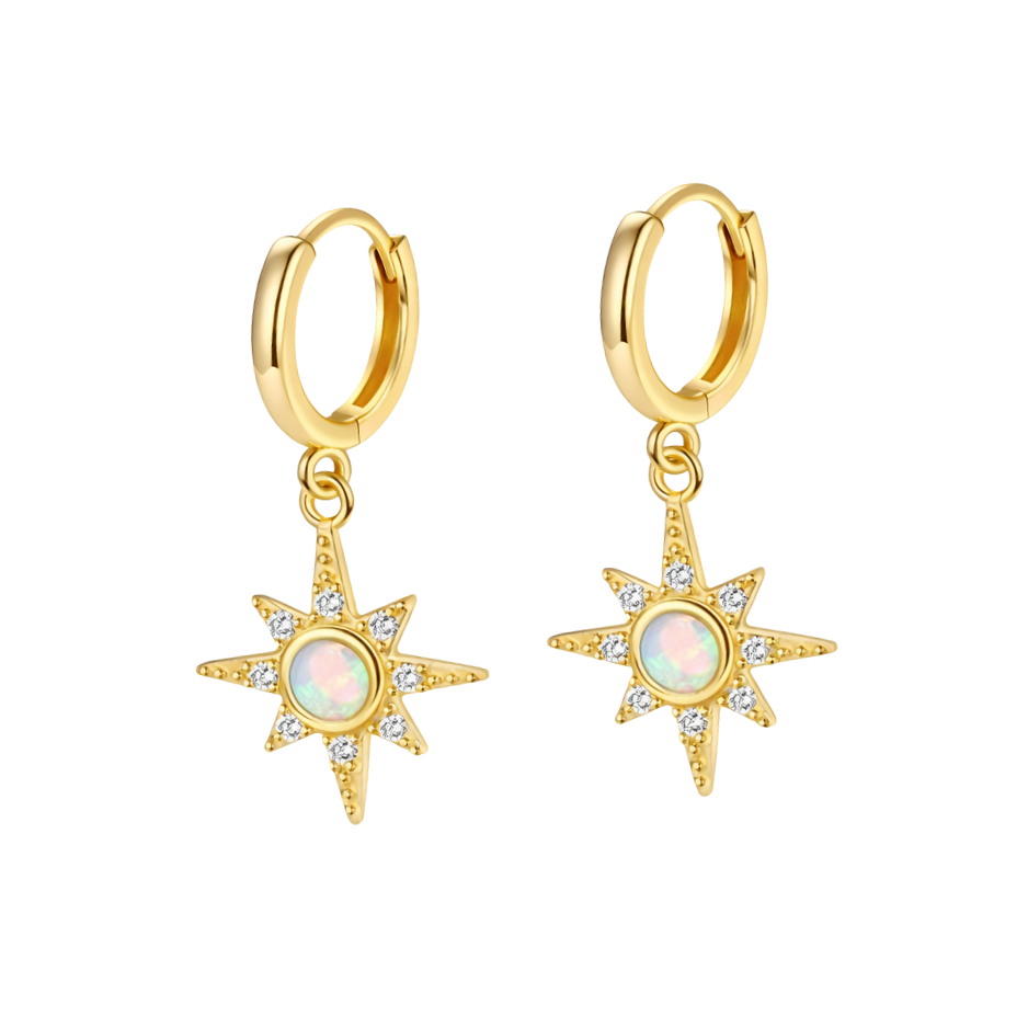 Opal Star Hoops - 14K Gold Plated