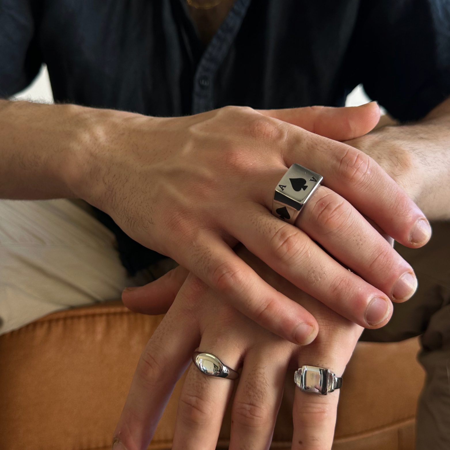Mens Bar Signet Ring - Stainless Steel 18K Gold Plated