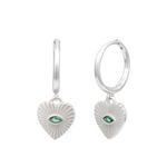 These playful heart-shaped hoops feature a stunning green marquise created Emerald for a touch of color and uniqueness.