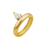 The Hayley Ring features a smooth thick band crafted from 18K gold plated stainless steel, paired with a stunning pear cut cubic zirconia stone.