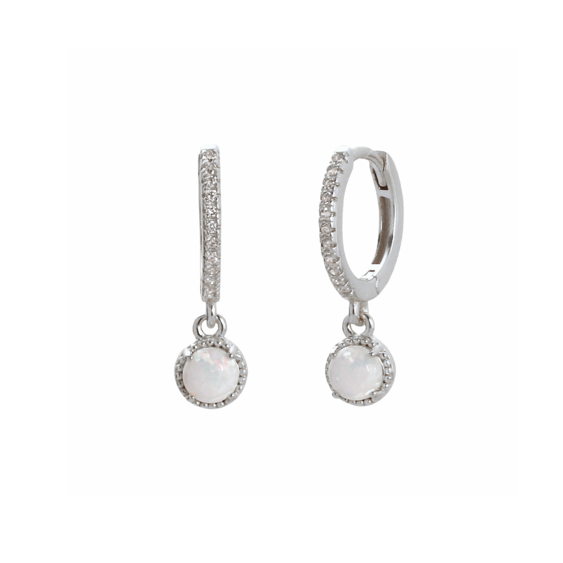 The white opalite huggies are accented with sparkling cubic zirconias, making for a playful yet elegant combination.