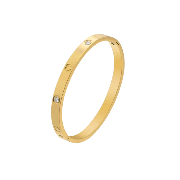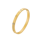 Elevate any collection with the Lover Bangle - 18K Stainless Steel. This stunning piece features circular rub-over set cubic zirconias and lovely heart engravings for a touch of elegance.