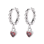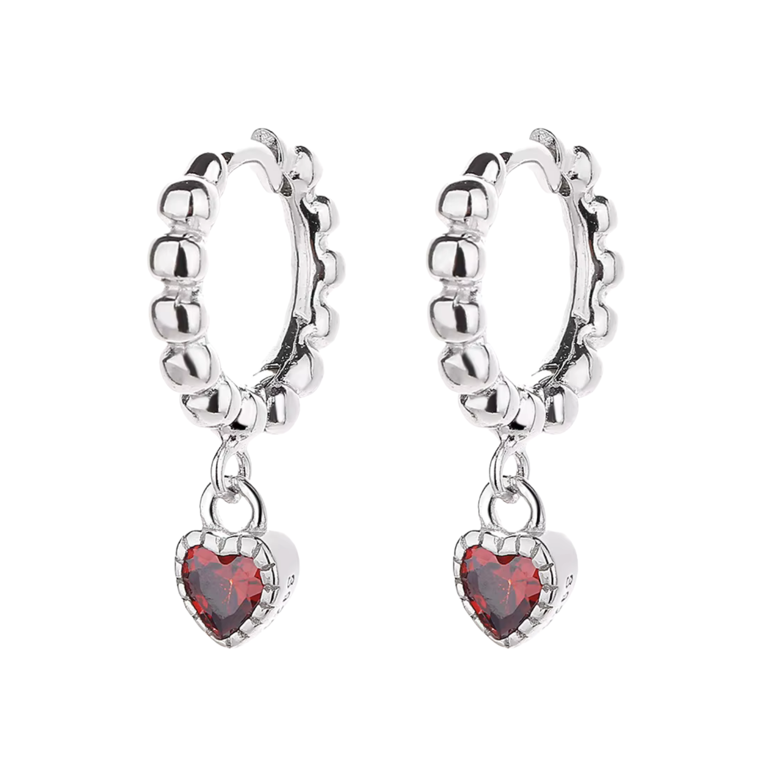 These sterling silver bobble hoops feature a charming red heart drop that dances with every movement.