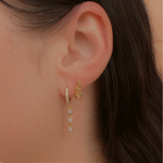 The Rhythm Earrings showcase round white cubic zirconias and an iridescent crystal, with a design that gives the illusion of climbing gracefully up the ear.