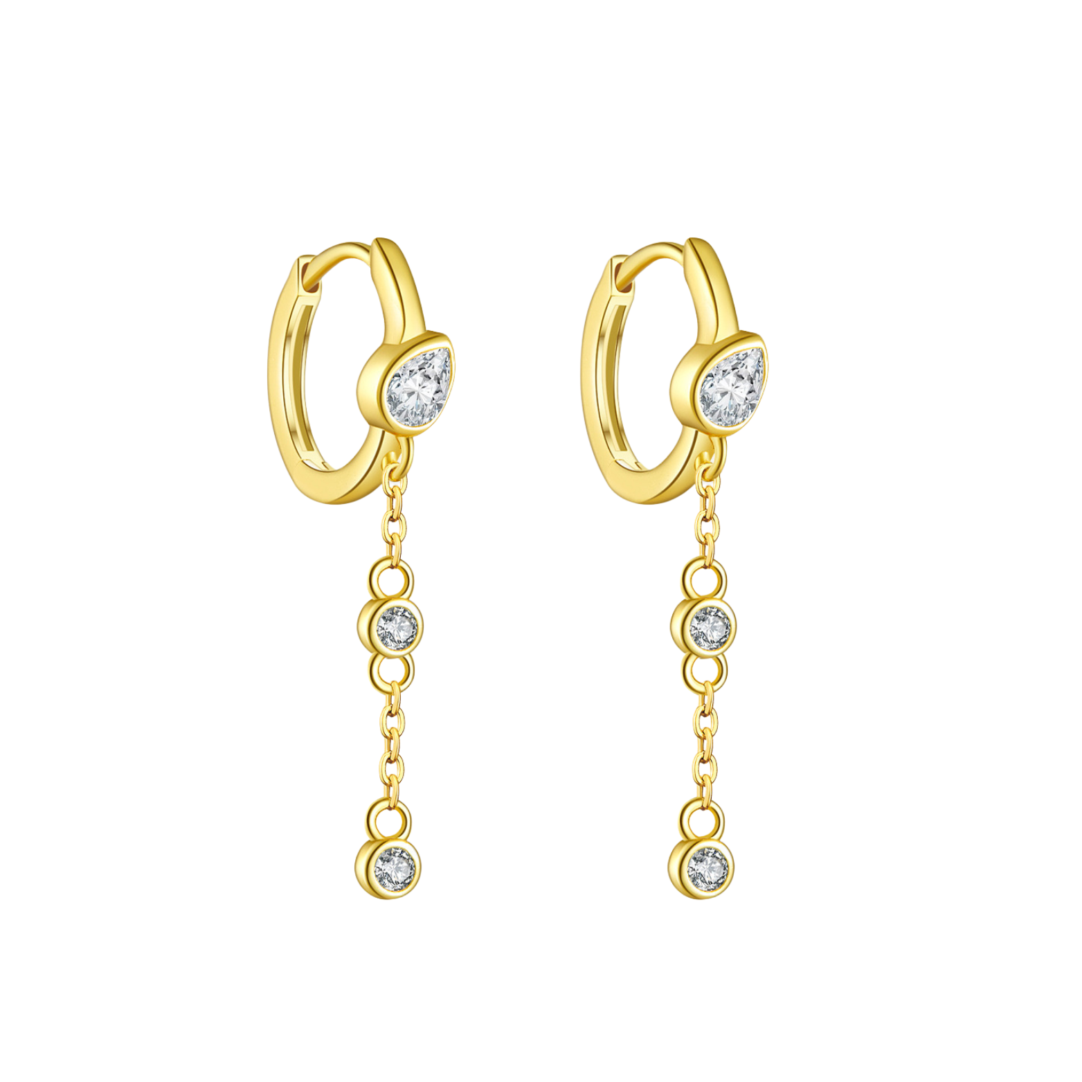 The Raya Hoops embody understated luxury with their gracefully suspended sparkly cubic zirconia drops.