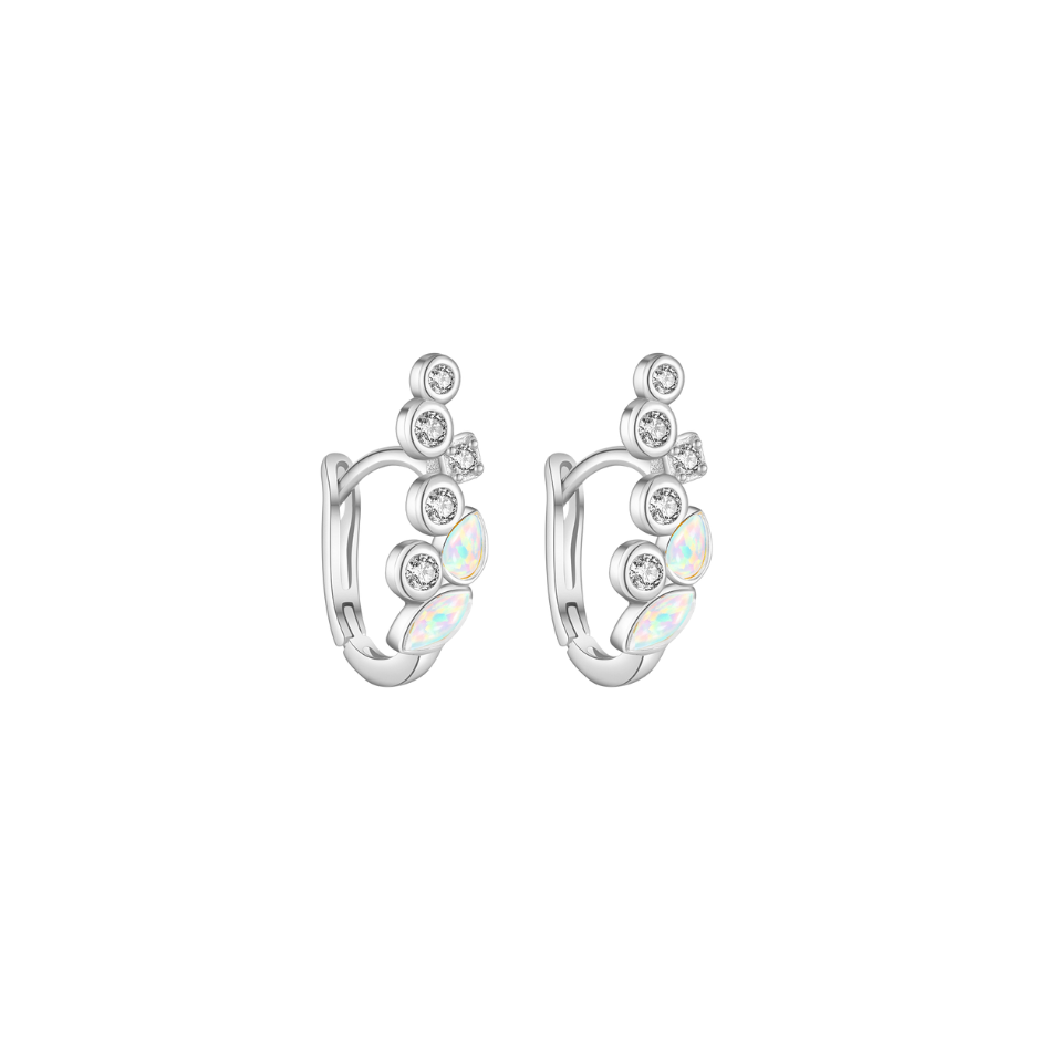 The Rhythm Earrings showcase round white cubic zirconias and an iridescent crystal, with a design that gives the illusion of climbing gracefully up the ear.